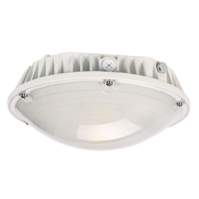 LED canopy fixture for commercial building exterior and parking garages. Tightly enclosed and durable fixture is ideal for enviroments with pollution and dust. LED uses about a third of the energy used by older lighting technology, contains no environmentally hazardous mercury and have lower light output depreciation. LED is a great lighting technology all around.